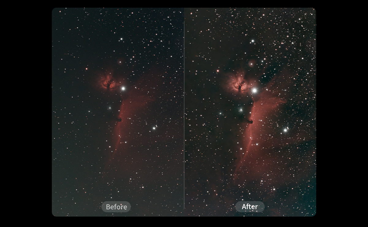 With a single tap, Seestar reduces noise while preserving fine celestial detail — delivering clean, natural images with remarkable clarity.